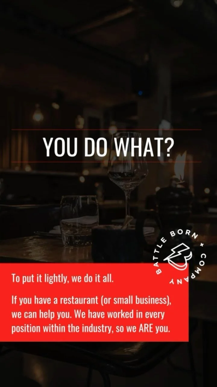 Battle Born + Co was created because over the years we have seen the good, the bad, and the ugly when it comes to operating a business. So many businesses facing difficulties are only a few strategic adjustments away from creating stability. The resources that go into those adjustments usually mean having multiple 3rd party groups and/or risking burnout for managers and/or owner operators. Battle Born aims to combat that old saying, “there are too many cooks in the kitchen.”
